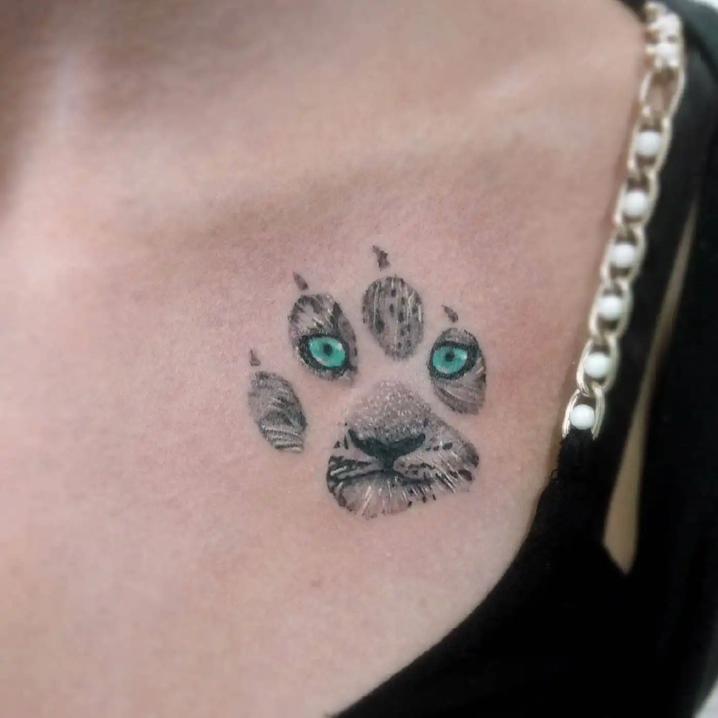Pequeño tatuaje en realismo de una huella de tigrillo, con el rostro del felino mirando desde su interior. Una pieza minimalista pero poderosa que captura la esencia salvaje, la conexión con la naturaleza y el espíritu libre de este misterioso habitante de la selva. 🐾